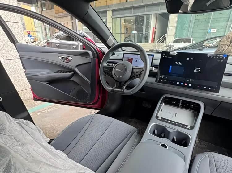 内饰方面,新车延续环抱式分层座舱设计,兼顾科技感与实用性。核心配备15.6英寸悬浮式中控大屏、10.25英寸全液晶仪表与W-HUD抬头显示,组成三屏交互系统,搭载智能座舱高阶版DiLink 150,操作流畅便捷。同时换装电子怀挡,副仪表台随之重新设计,依次配备空调出风口、50W手机无线快充、物理按键、双杯架及智能冷暖冰箱,日常使用便利性大幅提升,前排运动座椅包裹性出色,兼顾舒适性与支撑性。