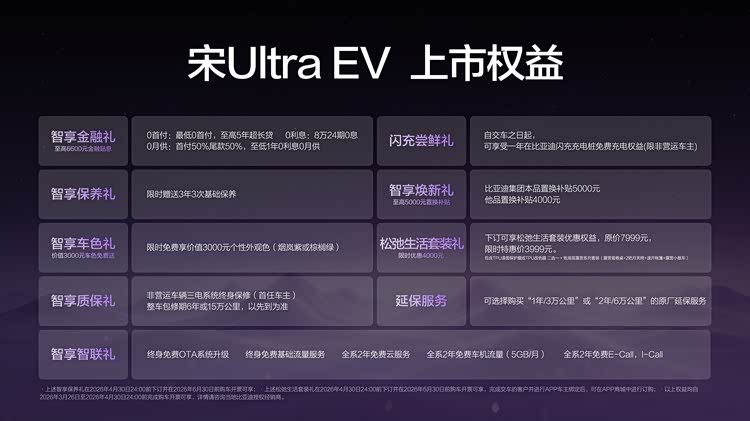 除最低配版外,其余三个版本都可选装天神之眼B-辅助驾驶激光版(DiPilot 300),选装价9900元;此外还包含非营运车主1年免费闪充、8万24期0息、首任非营运车主三电终身质保、整车6年/15万公里等上市权益。