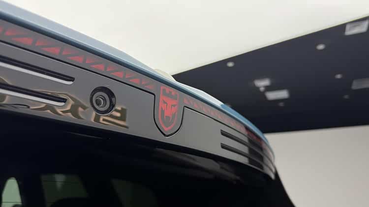 细节上,车辆设有水晶镭雕交互车灯组、高位刹车灯处的发光狼标、21英寸极锋轮毂以及内外中轴线上的金色饰条等众多标识性元素,具有很强的视觉辨识度。该车还采用短前悬长后悬设计,配备1.5米超长发动机盖、车尾扰流板及布雷博运动卡钳等装备,提升了整车的运动气势。