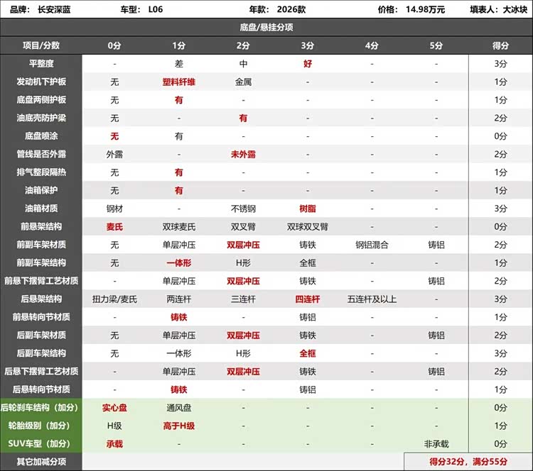 2026款深蓝L06底盘评分