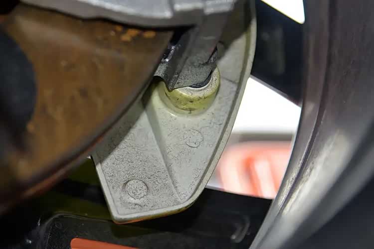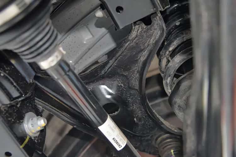 前悬也与深蓝S05一样,都是常见的麦弗逊结构,下摆臂是双层冲压钢板,转向节为铸铁材质。