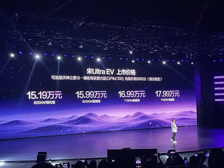 在发布会上,比亚迪公布了宋Ultra EV的官方指导价为15.19万-17.99万元。价廉,但这次比亚迪的诚意体现在物美。