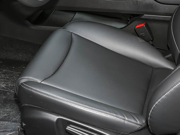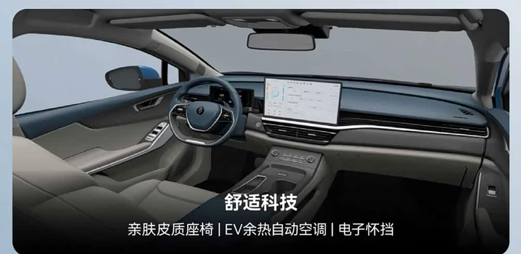 车内部分,依然是熟悉的环抱式座舱布局,驾驶员前方是一块悬浮式的7英寸液晶仪表盘,中控台中央则是一块尺寸达到14.6英寸的悬浮式大屏,这套组合是目前很多新能源车的标准配置。双辐式的多功能方向盘和电子怀挡换挡机构,也让车内显得比较简洁。