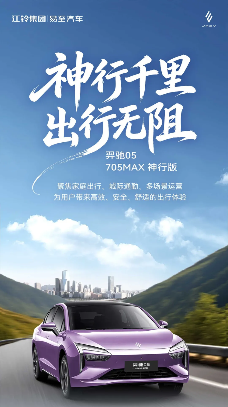 3月27日,江铃集团新能源正式公布了 羿驰05(参数|询价)一款新车型的官图,这款车被命名为705MAX神行版。顾名思义,它最显著的特点就是搭载了容量更大的电池组,将纯电续航里程提升到了705公里。目前市面上在售的羿驰05,根据配置和电池大小的不同,提供了从470公里到705公里不等的几种续航选择,而这次的新版本可以看作是顶配续航车型的一个补充。现款车型的价格区间在7.98万元到17.98万元之间,共有7个配置版本。