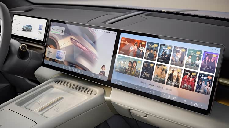 座舱部分同样是明显的“新势力思路”。车内采用了双15英寸2.4K大屏,加上10.25英寸液晶仪表,车机搭载了高通骁龙8295P芯片,车机流畅度和响应速度都有保障。副驾屏还支持防窥功能。更有意思的是它的AI智能伙伴,融合了智谱AI和文心大模型,支持免唤醒语音、连续指令,整体体验已经很接近当前主流智能电车。