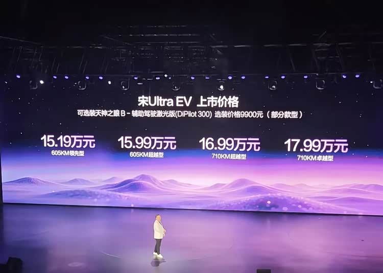 3月26日,比亚迪 宋Ultra EV(参数|询价)上市,推出4款车型,包括605KM领先型、605KM超越型、710KM超越型和710KM卓越型,指导价15.19万元—17.99万元,还带来“0元购、0元用、0元养”的购车权益。该车全系搭载比亚迪第二代刀片电池及闪充技术,拥有710公里CLTC纯电续航、天神之眼B、云辇-C、TBC高速爆胎稳行系统等配置。