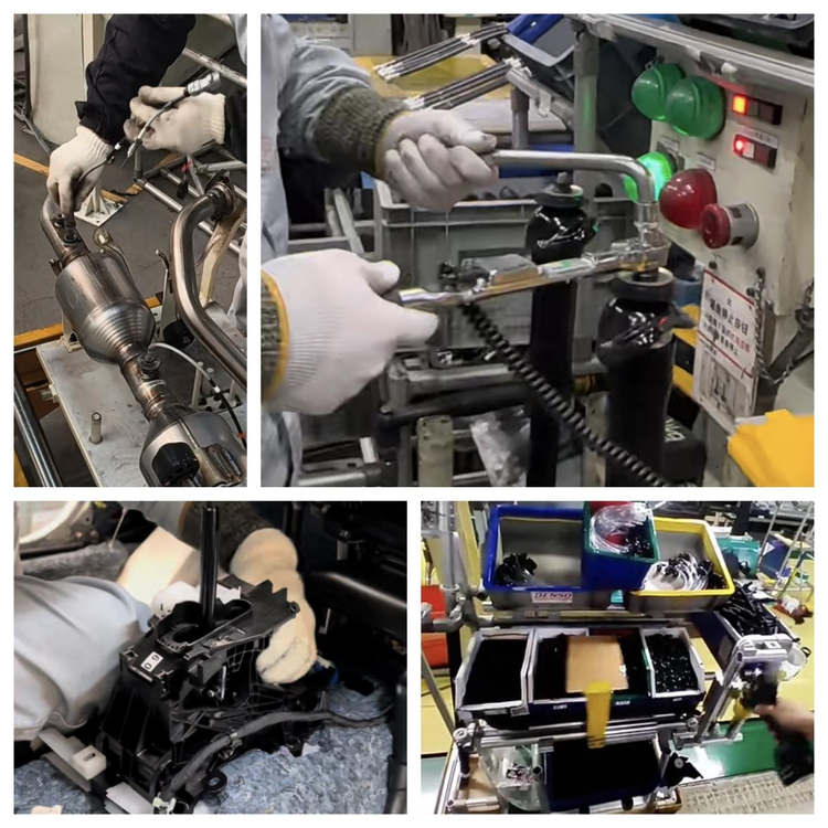 用机械设备能自动化解决吗?我们看管线是软管,且3根管线长度不同,排气管整体体积也较大,排气管上的插孔也比较小。对现有的机械臂而言,开发针对这套工序的自动化机械,估计比现有的纯人工贵多了。而未来的拟人机器人完成这种操作,只能说有可能,毕竟拧螺栓的同时,还要对后面的软管进行辅助掌控,难度有点大。