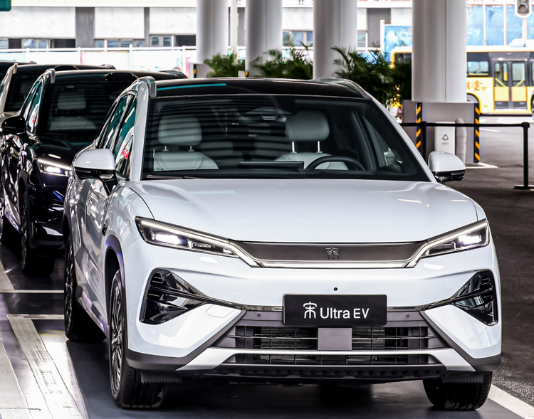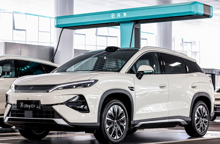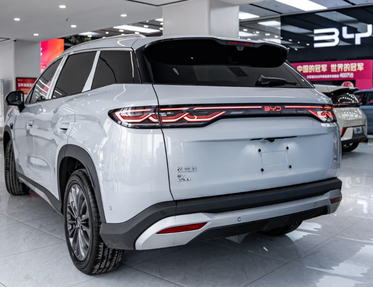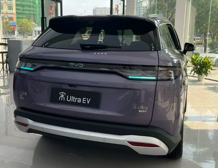宋Ultra EV的外观造型融合了宋L DMi、宋Pro的设计理念,前脸乍一看还带有几分唐L的韵味,配备有半隐藏式门把手,尾部是中国结设计元素的贯穿式尾灯,整体外观看着还是比较大气的。