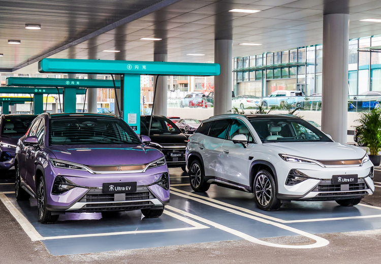 比亚迪宋Ultra EV标配800V高压平台,全系搭载比亚迪第二代刀片电池,电池容量69.07kWh、82.7kWh,在CLTC工况下纯电续航605km、710km。车辆全系标配闪充技术,电池电量从10%充至97%仅需9分钟,充电速度遥遥领先于同级竞争对手,可以说在有闪充条件的情况下,车主是基本没有续航焦虑了。