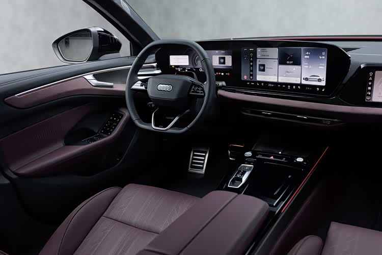内饰设计方面,全新奥迪A6L采用全新环抱式座舱设计,拥有仿麂皮内饰、多功能奢享座椅、1.96平方米智能天幕及高端音响系统,给人的感官效果尤为高级、奢华。核心交互部分由三块高清大屏组成,分别为11.9英寸仪表盘+14.5英寸中控屏+10.9英寸副驾屏,三屏组合显示清晰,功能分区明确,能满足导航、娱乐、车辆控制等多种需求。