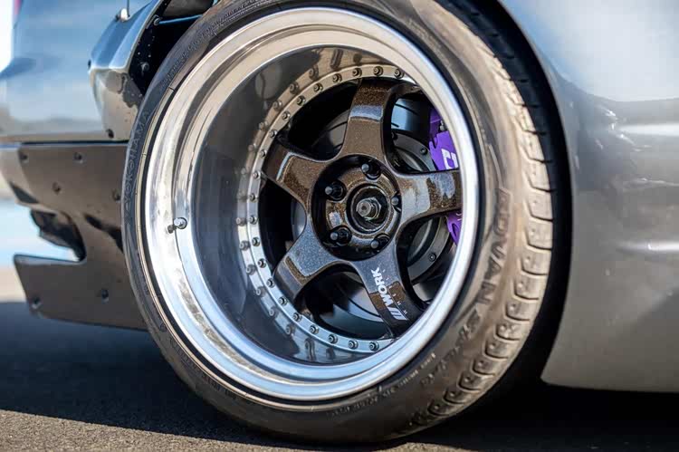 制动部分是前八活塞、后六活塞的D2刹车卡钳,搭配Znoelli DDS运动型刹车片和刹车盘,以及GKTech刹车钢油管和来自R33 Skyline的刹车总泵。