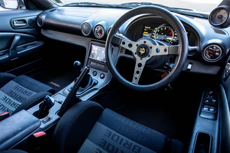 外观改装清单上都充斥着JDM性能部件,内饰也没有落下,其中Defi仪表被设置在S15的空调出风口,并配有PowerTune仪表、Bride桶椅、Momo方向盘以及Nismo Duracon换挡杆,尾部则升级了低音炮,以降低引擎“噪声”带来的影响。