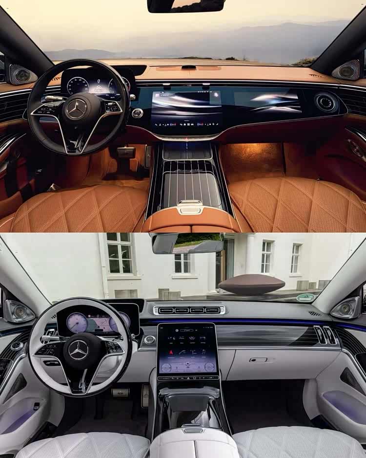 进入车内,可以看到现款的纵置中控屏被取消,取而代之的是与新款奔驰S级相似的一体式连屏设计,操作系统从现款的MBUX系统改为MB.OS架构,新款方向盘回归实体按键,并在左侧增加了领航辅助系统的物理控制键,操作更直观,解决了现款全触控按键在盲操作时的不便,新款还弥补了智驾方面的短板,可以实现车位到车位的辅助驾驶。