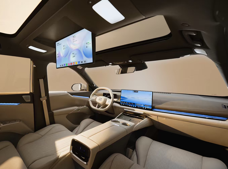 至境E7定位是中型SUV,车型也被不少网友视为“昂科威新能源版”,车辆的外观设计较为年轻时尚,车身尺寸是4850/1910/1676mm,轴距2850mm,车内不仅配备了车载冰箱,还有后排吸顶屏的加持,智驾方面配备的是Momenta R6大模型,内置逍遥智行辅助驾驶系统。