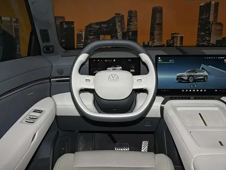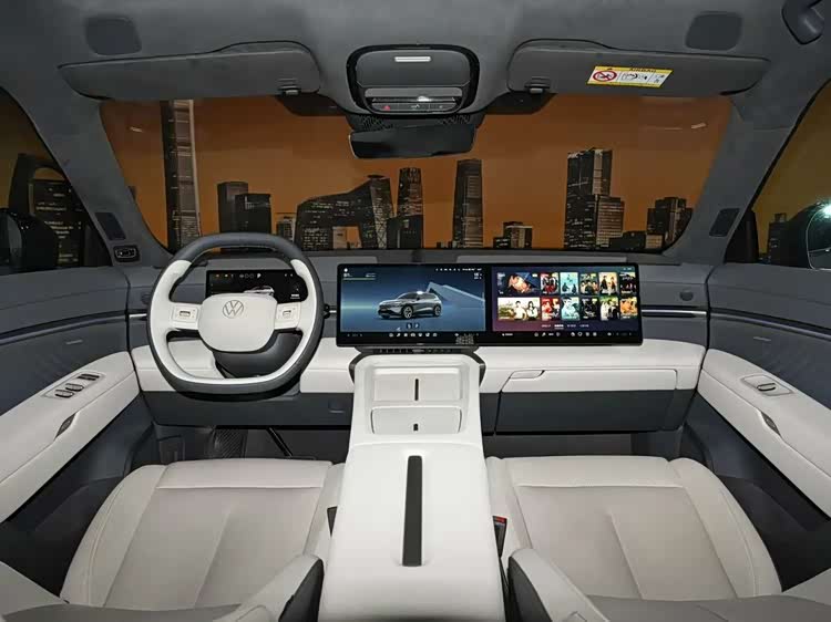 内饰方面,与众08内饰整体采用较为居家的设计风格,环抱式座舱搭配10.25英寸高清液晶仪表+双14.96英寸双联屏,让其符合当下新能源车型的主流配置以及审美。双辐多功能方向盘回归实体按键与滚轮设计,中央处具有金色可发光大众车标。整车座椅采用Nappa真皮,副驾座椅提供14向电动调节配合腿托。同时,车辆还将提供10点气动按摩、柔光化妆镜。车辆二排提供折叠桌板、主/副驾座椅靠背磁吸接口、靠背10°可调,提供座椅加热、隐私玻璃、中央扶手杯托。此外,车顶提供1.74㎡智能调光天幕,搭载20扬声器音响系统,支持7.1.4声道。