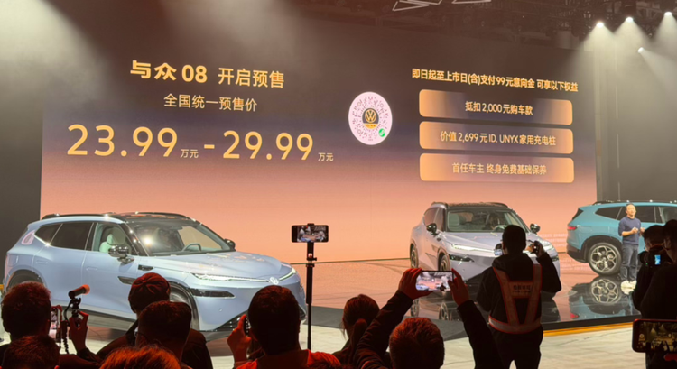 此次预售的与众08,是大众安徽推出的第三款车型,也是大众与小鹏合作推出的首款车型,定位中大型纯电SUV,由于小鹏汽车的加入,这款车型在智驾方面会有较好的表现,再加上大众汽车的造车经验,市场对于这款车型的预期较高。从产品定位来看,与众08将瞄准小鹏G9、问界M7、小米YU7等车型。