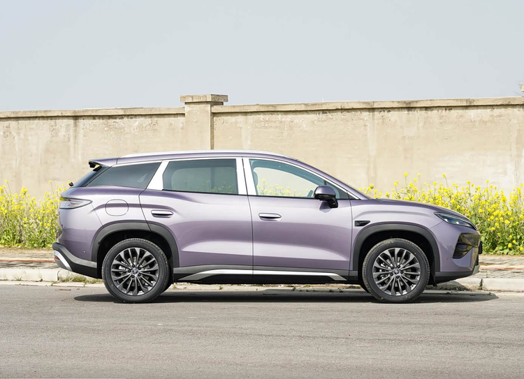 而在车身侧面的设计上,这款车型的线条感非常明显,让它显得富有肌肉感,特别是引擎盖与尾部区域的弧度感线条,让整个侧面的颜值都有一个很大的提升,至于半隐藏式的门把手也是非常的适合当下的审美与趋势。设计来到尾部,这个尾部的设计和以前宋系列的车型都截然不同,贯穿式的尾灯呈现出了很不错的高级感,而且整个尾部的圆润感也非常强。最后就是车身尺寸方面了,这款车型的长宽高分别为4850/1910/1670mm,轴距为2840mm,定位的是一款中型SUV,确实这个比例与空间基本能够满足我们正常的家庭用车需求。
