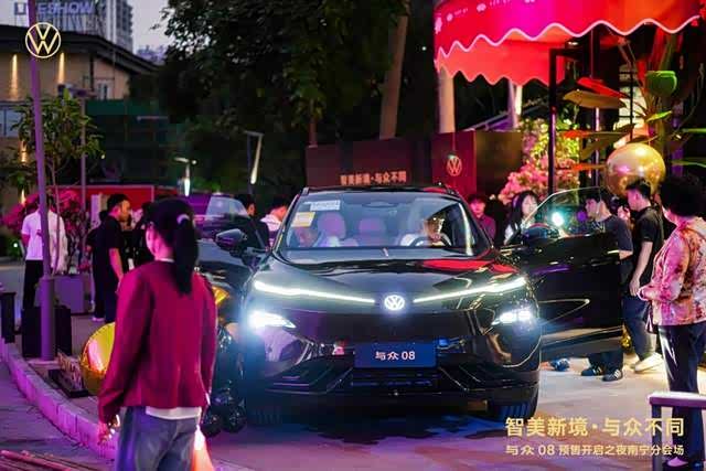 3月26日晚,大众汽车与小鹏汽车首款联合开发的车型 与众08(参数|询价)在合肥开启预售,预售价为23.99-29.99万元。在南宁民歌湖之畔,“智美新境·与众不同——与众08预售开启之夜南宁分会场”同步举行。活动邀请了南宁本地主流汽车媒体代表及ID.与众车主代表齐聚一堂,通过连线直播与实车品鉴,共同见证了与众08“跃级智美大五座SUV”的重磅登场时刻。