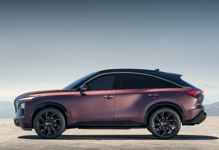 侧面轿跑SUV的动感姿态被勾勒出来,窗线用镀铬边线提亮,脚踩20或21英寸大轮圈。
