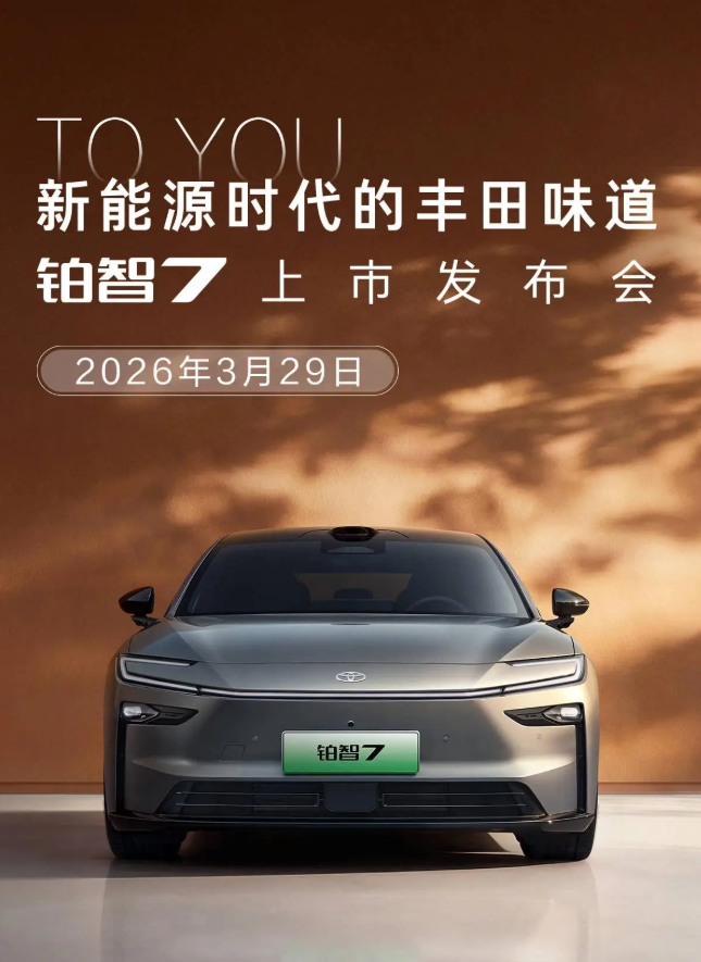 车家号·0浏览·2026-03-27 20:28 · 广东3月26日消息,广汽丰田宣布铂智7上市发布会定于3月29日,新车搭载鸿蒙座舱、Momenta智驾、小米车载生态,5款配置预售价15.68-20.98万元。