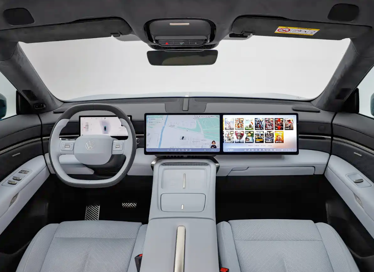 与众08是大众安徽首款采用全新设计语言的纯电车型,整体视觉冲击力强烈。前脸采用狭长上扬的日行灯,与中央大众品牌LOGO融为一体,灯组内置超400颗可独立控制LED灯珠,支持自定义动态灯语,解锁、停泊、行驶等场景均可呈现差异化动画效果。车尾高位刹车灯集成沃尔夫斯堡狼头标志,为量产车首次应用,仪式感十足。