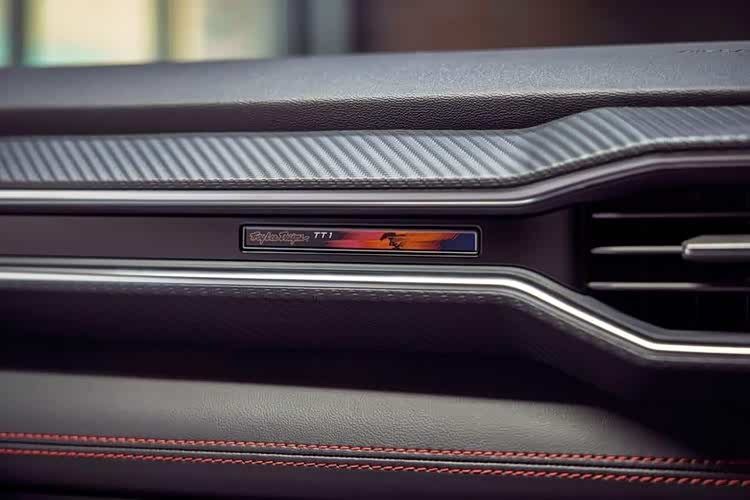 至于内饰则引入黑色搭配 Carmine Red 胭脂红的双色布置,营造出专属的座舱氛围,且在中控台右侧也嵌有 TLD Signature Edition 特制铭牌,进一步彰显与众不同的限量特别身份。