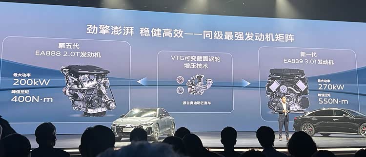燃油版分别搭载代号EA888的第五代2.0T四缸机,和代号EA839的新一代3.0T V6两款增压发动机,形成了动力矩阵。