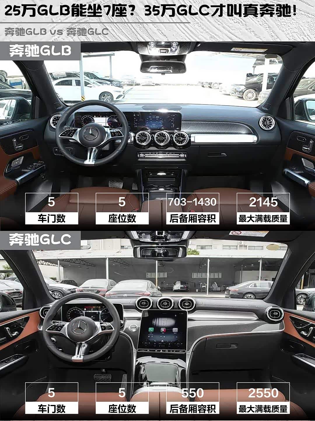 GLB指导价30.19万,终端优惠后25万左右能落地;GLC要35.18万,但多了四驱和更大空间。个人觉得如果预算有限选GLB,要全面豪华体验直接上GLC,毕竟"奔驰标永不亏"的真理你懂的💎