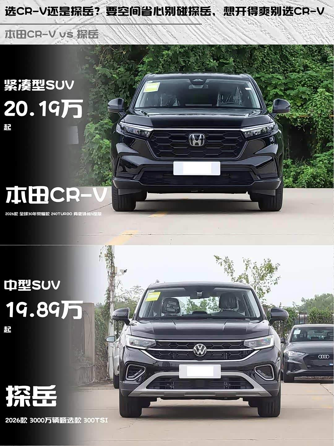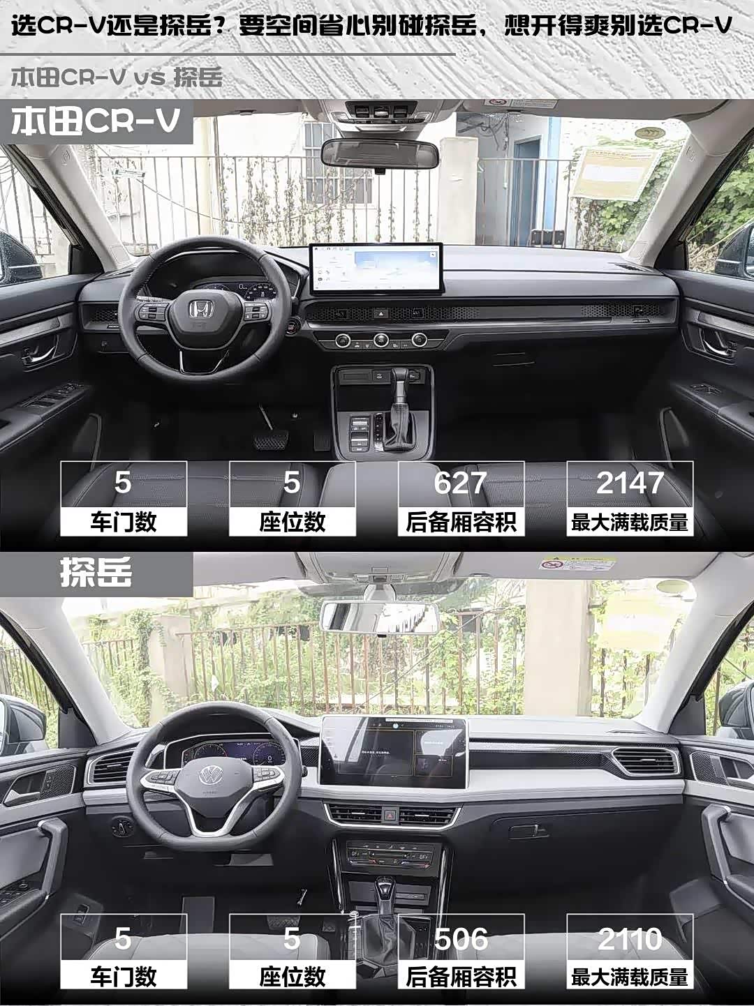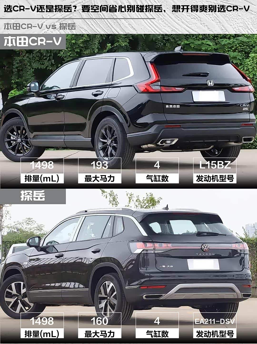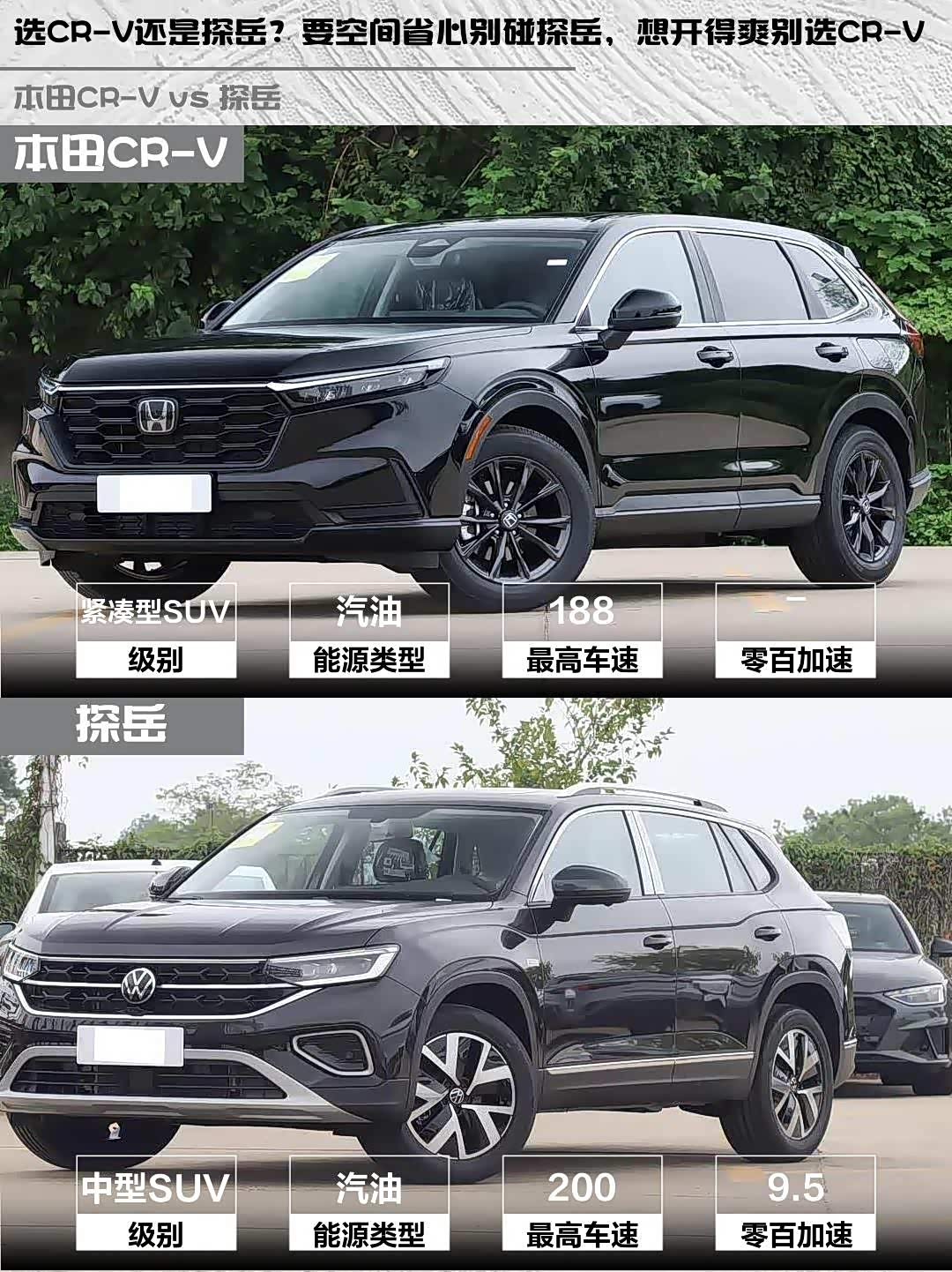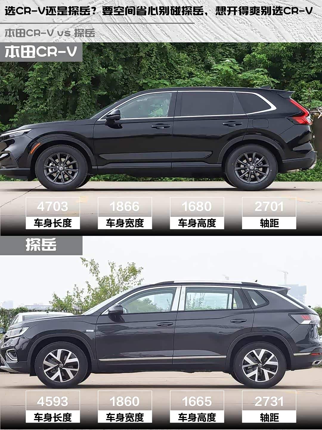 选CR-V还是探岳?要空间省心别碰探岳,想开得爽别选CR-V