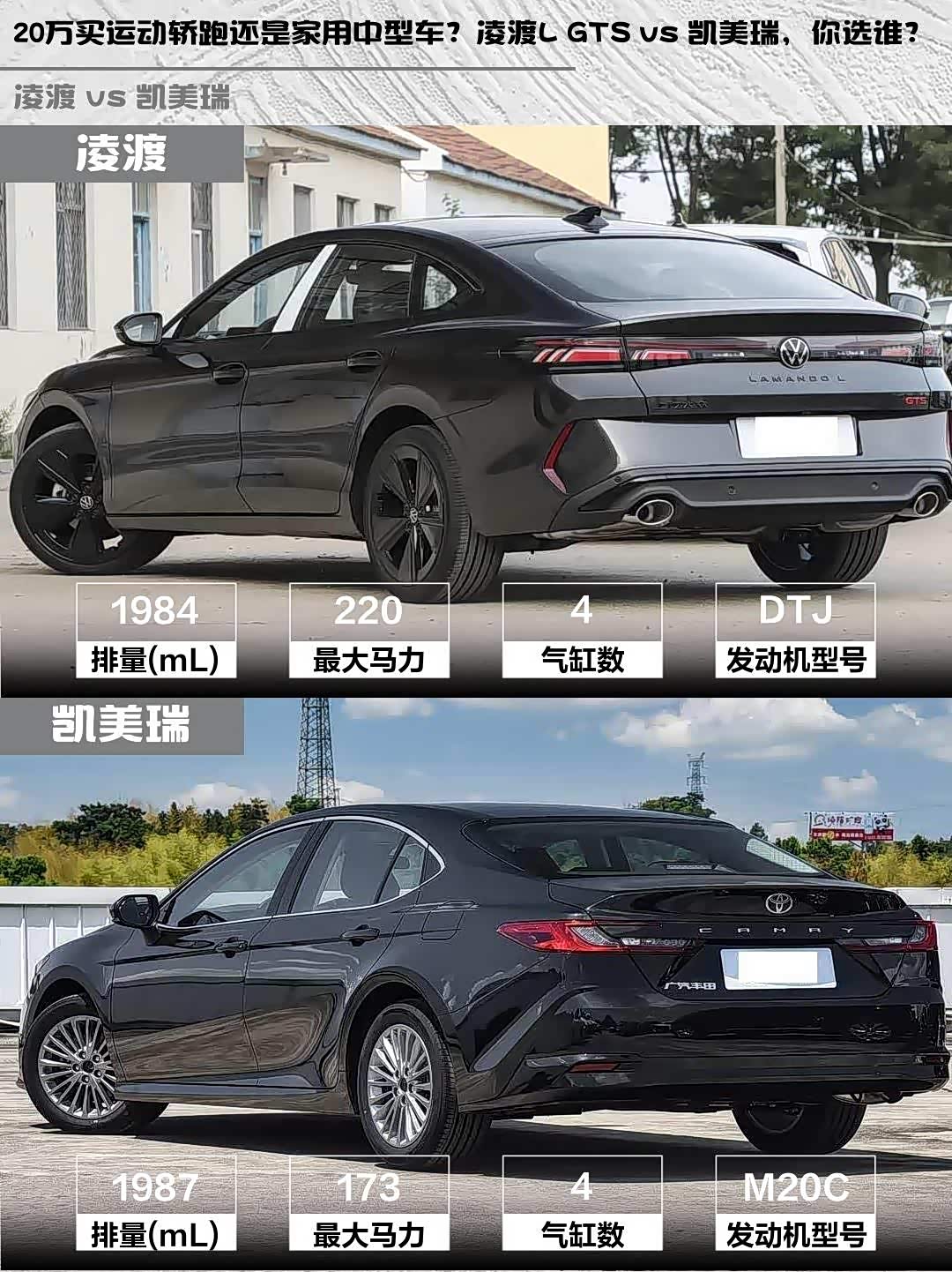 要驾驶乐趣和回头率选凌渡L GTS,无框车门+2.0T的组合同价位独一份;追求省心耐用就凯美瑞,保值率和服务网点更有优势。我个人最后选了凌渡L,毕竟每天上下班能对着这么帅的车,堵车都不烦躁了~