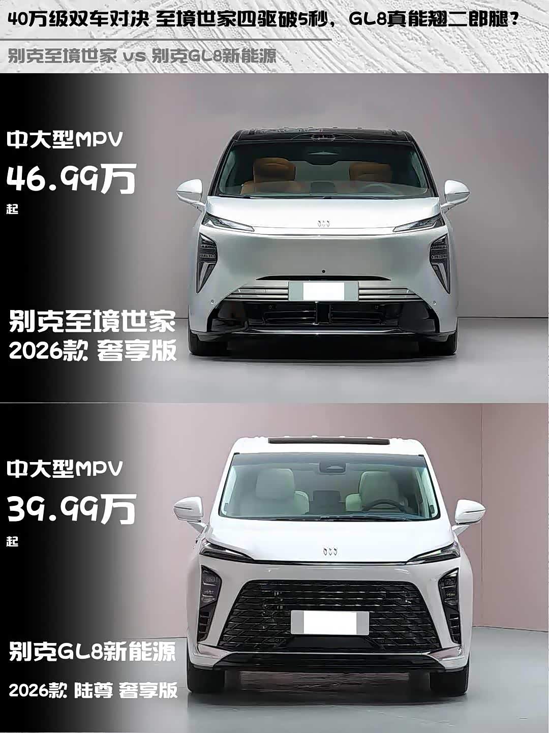 最近在选家用MPV的朋友看过来!👀 作为深度体验过两款别克旗舰MPV的老司机,今天聊聊2026款 别克至境世家(参数|询价)奢享版和GL8新能源陆尊奢享版的真实对比感受~(钱包准备好,都是40万+的狠货)