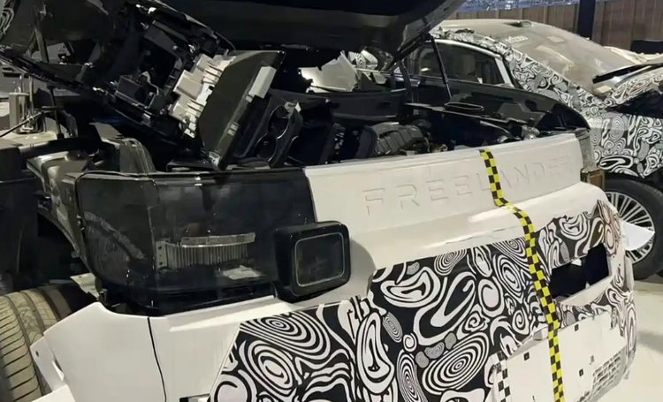 从测试车图片来看,新车采用硬朗的方盒子SUV造型,前大灯致敬经典神行者设计,方形灯腔中央镶嵌“FREELANDER”品牌标识,尾部同样设有大面积留白与显著品牌标识,整体风格简约有力。内饰则展现出强烈的科技感,中控台配备大尺寸贯穿式屏幕与悬浮式中控屏,下方设有无线充电面板,三辐式方向盘设计简约,采用滚轮按键操作。