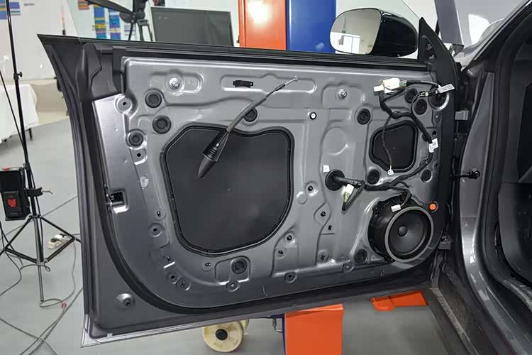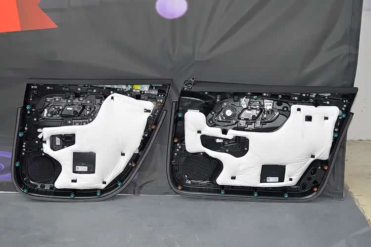 车门内饰板上有比较环保的白色原生隔音棉,覆盖面积比较大。
