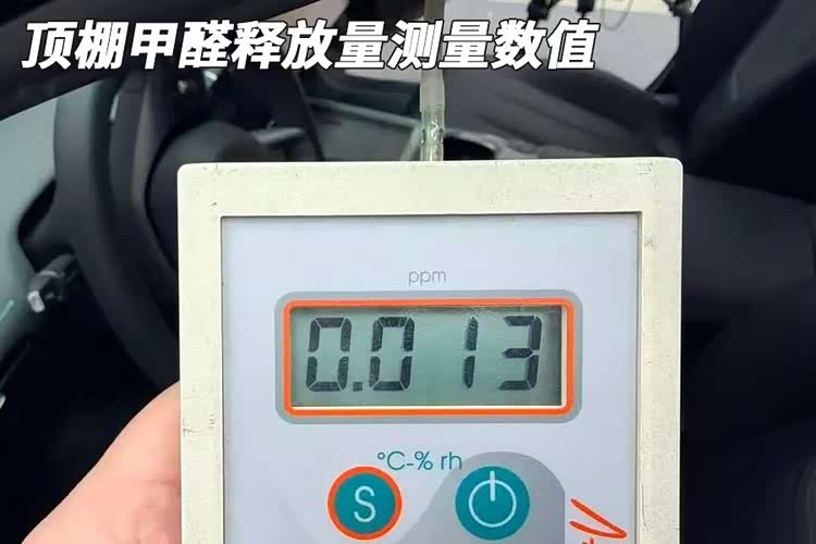 座椅的甲醛释放量测量数值为0.010毫克每立方米,顶棚中的甲醛释放量测量数值为0.013毫克每立方米。