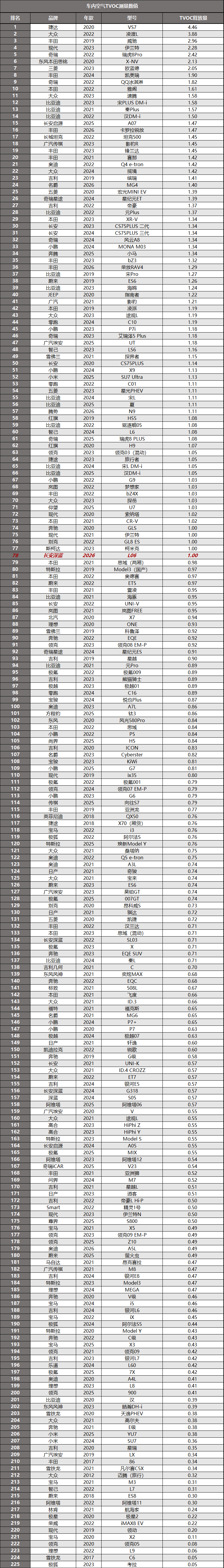 车内除了甲醛之外,TVOC也是重要的有毒有害气体、它是造成车内味道浓重的主要原因之一。TVOC是指空间内所有有机气态物质的总称,例如苯类、烷类、芳烃类、烯类……这些有机物都会对人体健康造成伤害。 测试方法:将测试车辆在自然环境中,打开车门车窗进行完全通风;随后,将一根硅胶软管固定在司机头枕附近,模拟人呼吸位置;关闭车门车窗,将车辆停在恒温23±1℃的环境中密封静置16小时;使用盟莆安MP181型TVOC检测仪,从软管泵吸车内空气,直至数值稳定后,得出最终结果。