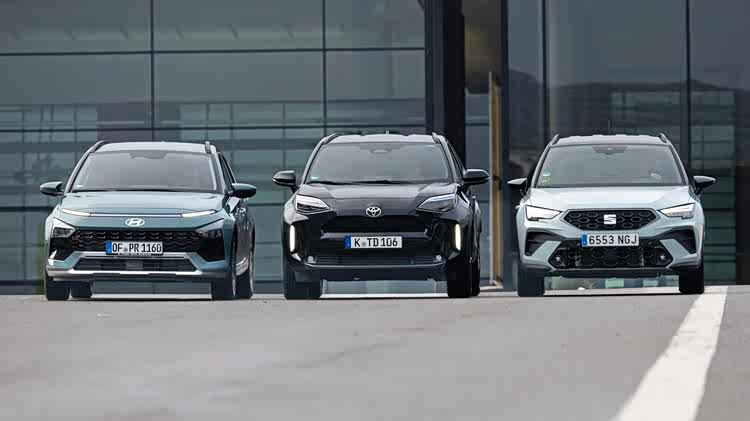 在当下SUV市场,动力、操控和油耗常常难以兼得。这次,我们将韩系新秀现代汽车BAYON与来自西班牙 西雅特Arona(参数|询价)及日系混合动力代表丰田YARiSCross进行对比测试,看看效率、驾驶乐趣和舒适性究竟谁能笑到最后。