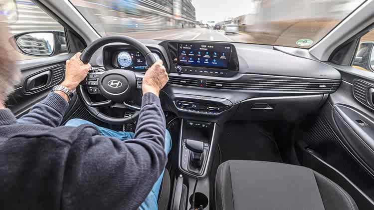 动力方面,BAYON搭载1.0升三缸发动机和48V轻混系统。测试车可输出100马力、200牛·米,但目前在最新价格表中,现代汽车只提供90马力、172牛·米版本——原因是欧7排放标准。价格保持不变:测试车Prime版30100欧元,与上一代100马力版本相同。尽管测试车多了10马力,但在试驾中,BAYON仍显吃力,尤其是轻微上坡或市区加速时。7挡双离合偏向舒适,虽然有运动模式,仪表盘会变红,但新的换挡策略更多显得努力而非运动。