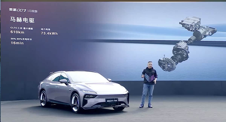 关于开起来的感受,这台奕派007闪现版搭载的电机,最大输出是200千瓦,峰值扭矩有310牛·米。这个动力水平推动一辆车,官方给出的0到100公里/小时加速时间是5.7秒,对于日常使用来说,这个动力算是相当充裕了,超车并线会很干脆。