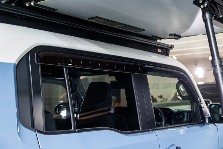 The Nature Explorer同样采用了ARB套件,不过,就像咱们看到的,车辆一方面通过前保险杠探照灯来优化夜间与露营照明,另一方面也提供了车顶帐篷、可伸缩遮阳天幕等配件,让用户们能够实现户外露营,让驾驶出行变得更有趣味感一些。