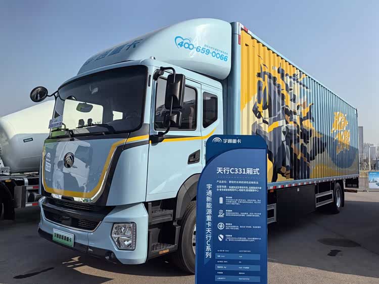 天行C331翼开版箱货是一款专为城市物流打造的高效产品。整车采用低风阻流线设计,风阻系数仅 0.376,搭配350kW大电机直驱系统与2600N.m反拖扭矩专用后桥,实现续航与能效双突破。标配331度长寿命电池,放电深度极高,剩余5%电量仍可继续行驶,卡尔曼滤波算法将电量误差控制在 2度电,确保400km+真实续航不缩水。