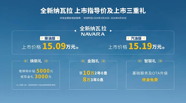 “日产全新一代纳瓦拉皮卡王者归来,新增柴油版本,更智能、更强劲、更舒享,续写纳瓦拉全球传奇新篇章。郑州日产全面进阶Z9皮卡,新增越野旗舰Z9 GTS系列,原厂改装、强悍越野性能、丰富智能配置,让越野梦想触手可及。”郑州日产市场营销总部总部长袁明宣布三车上市。