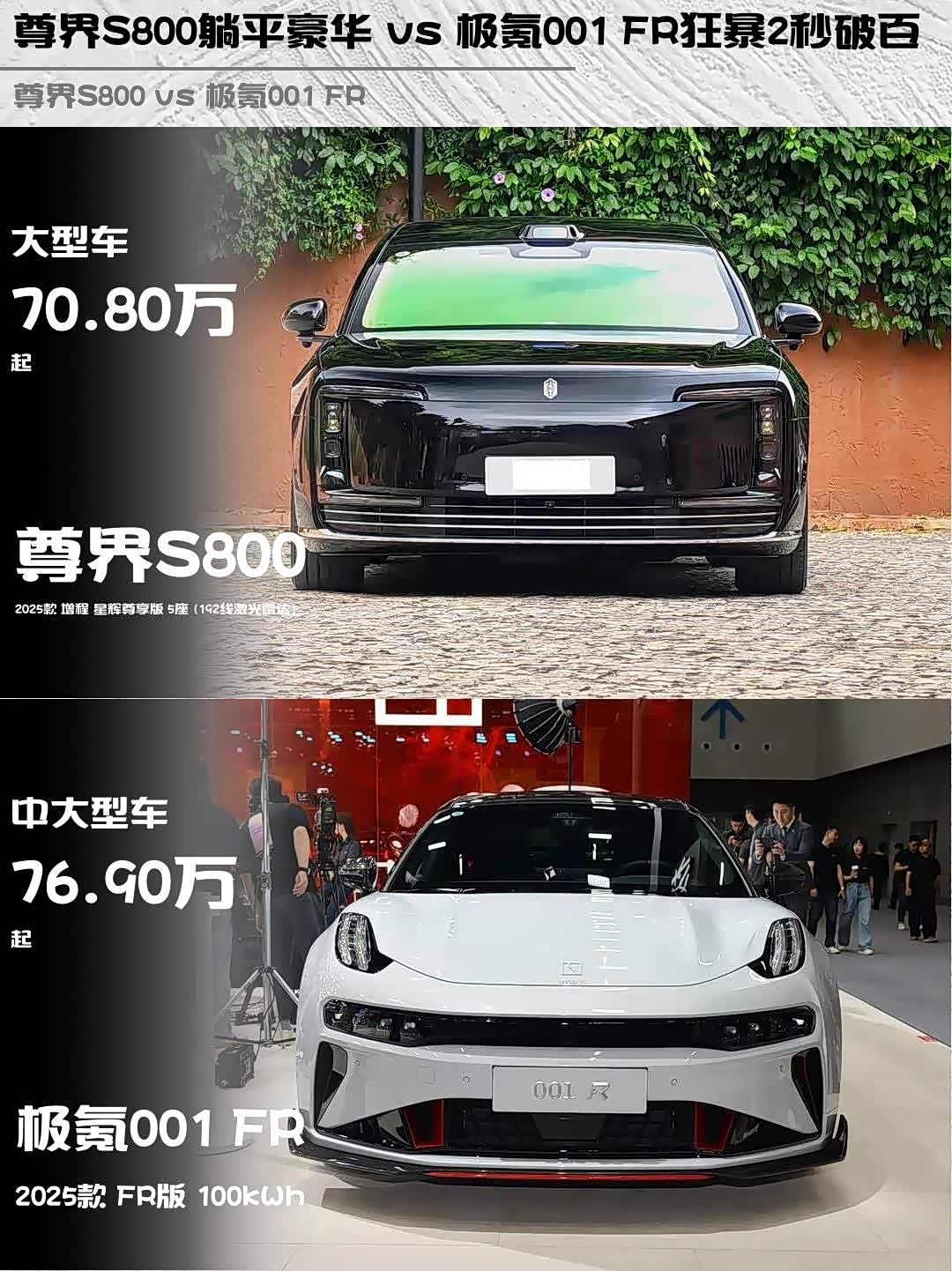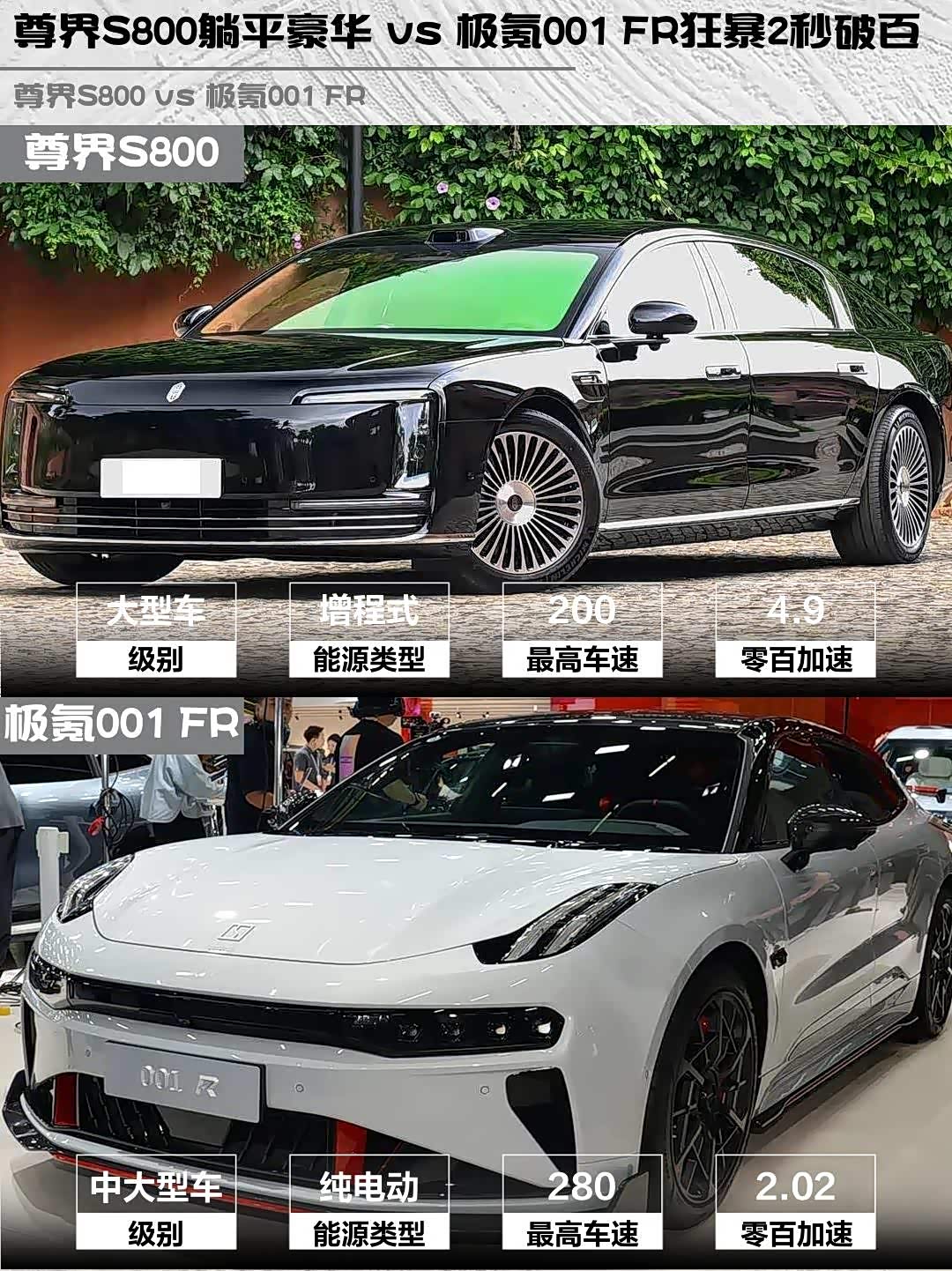 尊界S800躺平豪华 vs 极氪001 FR狂暴2秒破百