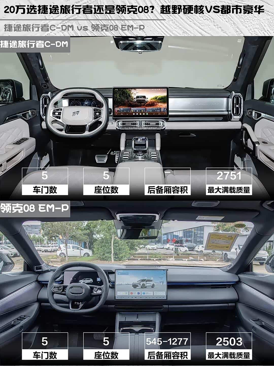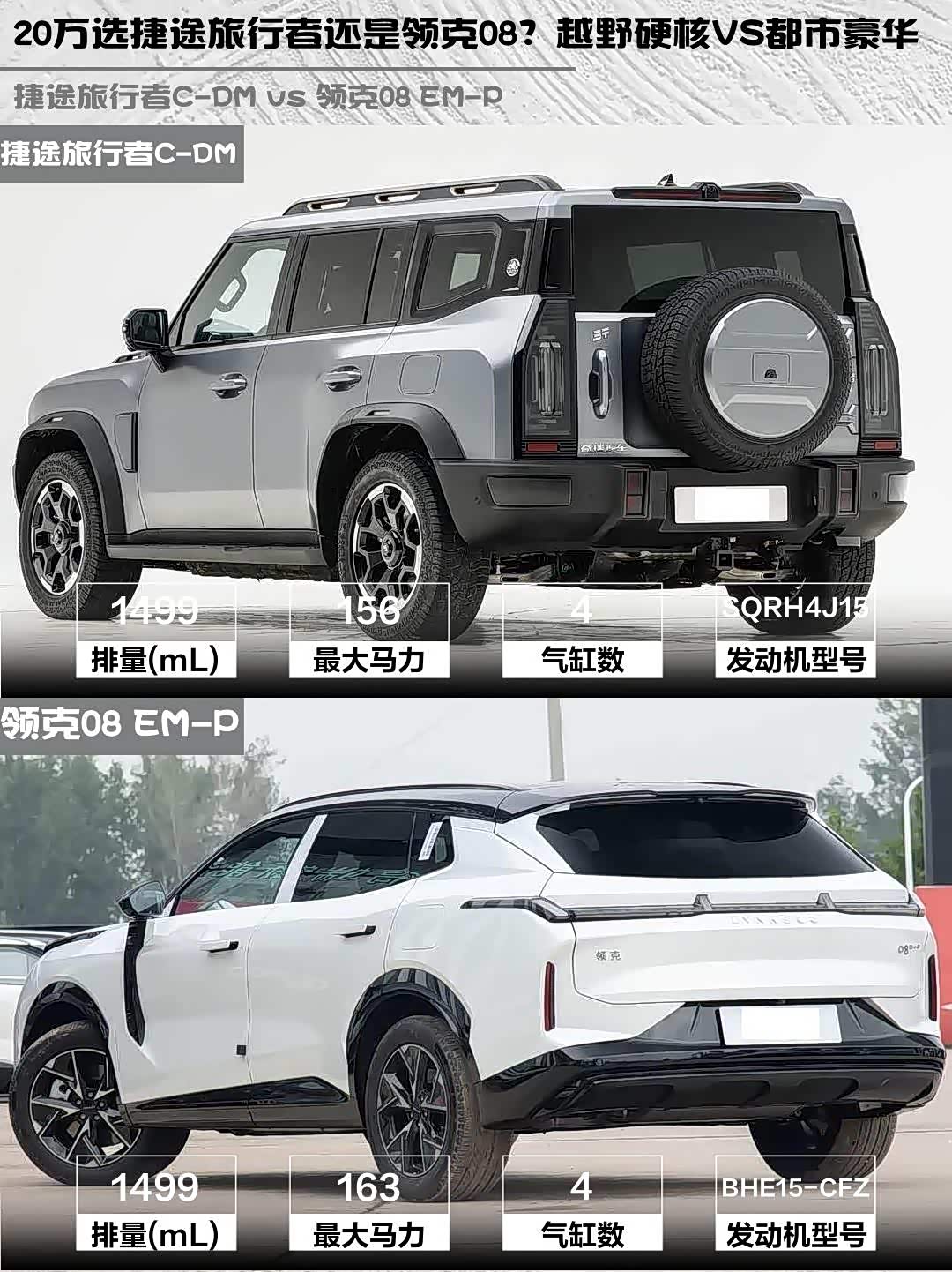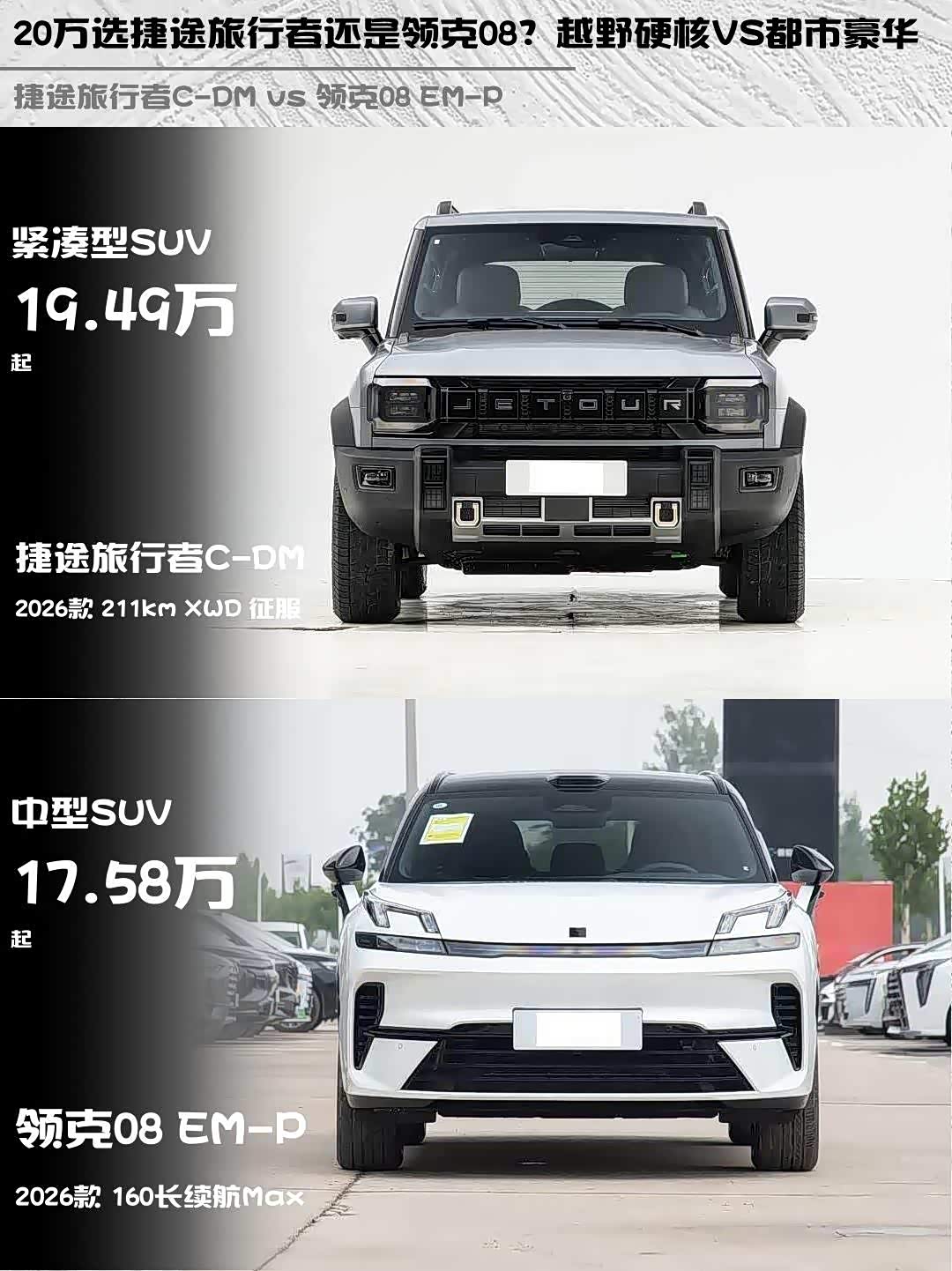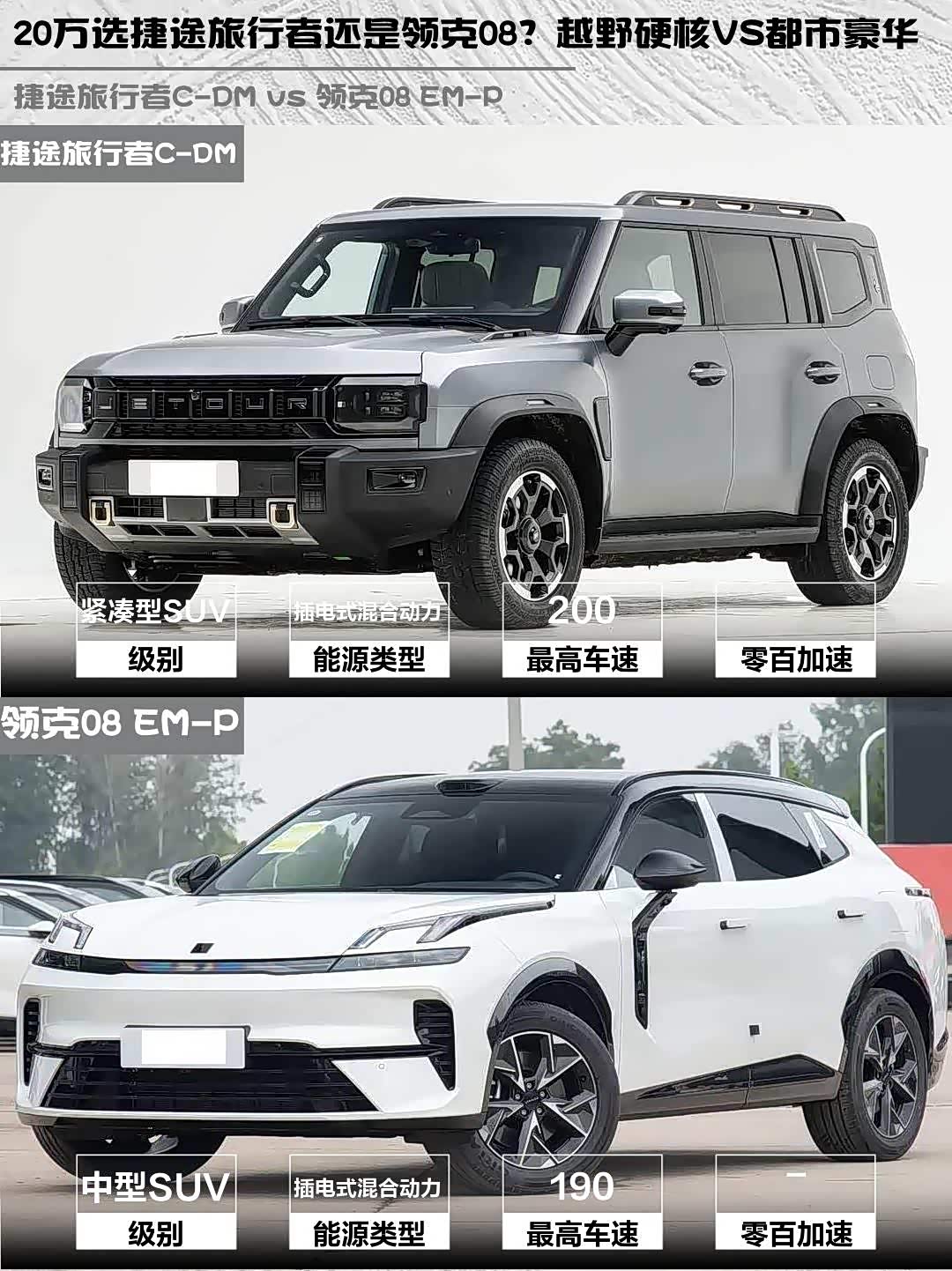 最近在纠结20万级插混SUV选谁?作为深度体验过 捷途旅行者C-DM(参数|询价) 2026款 211km XWD 征服和领克08 EM-P 2026款 160长续航Max的老司机,掏心窝子分享真实对比感受🔥