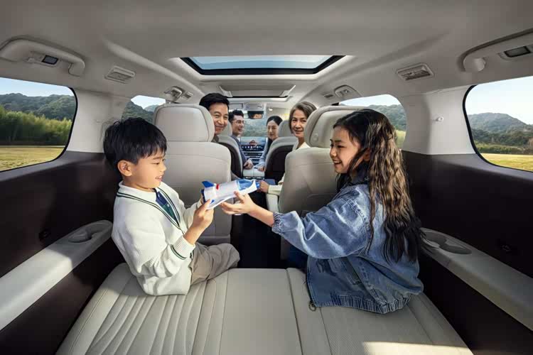 在细节体验上,新车同样考虑到不同使用场景。17.3英寸高清吸顶屏、智能冷暖冰箱(-6℃~50℃)、66W快充接口等配置,为长途出行提供更多便利;400mm低地台与549mm长扶手设计,则让老人、儿童上下车更加从容。