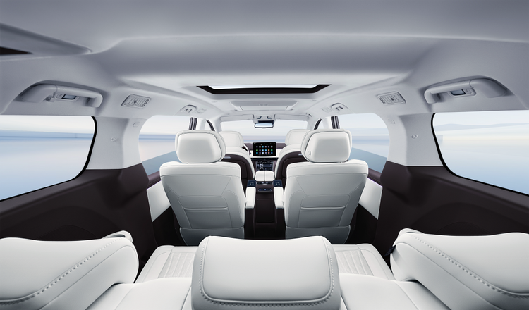 具体到座椅层面,第二排零重力航空座椅提供10向电动调节、8点按摩及通风加热功能,并通过10层结构与零压海绵提升支撑表现。第三排则不再是“临时座位”,517mm坐垫进深与365mm坐垫高度,使其在长途乘坐中也具备一定舒适性。配合4/6分折与240mm滑动调节,空间灵活性进一步提升。