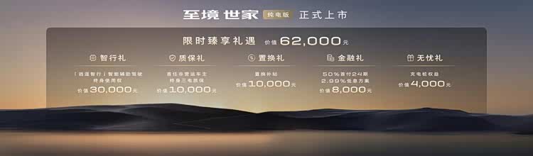 先来看一下价格,别克这次倒是学会了理想之前的套路, 别克至境世家(参数|询价)纯电版将只有一款配置可选,指导价为48.99万元,也就是说不分低配和高配,让所有功能配置标配。