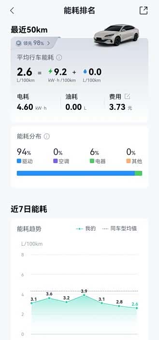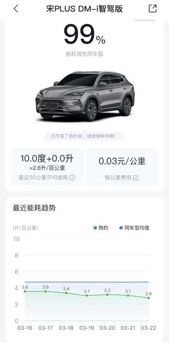 对于必须用油的场景比亚迪也给出了答案,OTA后百公里2.6L油耗,加油也不心疼。即便跑长途需要烧油,比亚迪插混同样底气十足。第五代DM技术通过OTA升级,百公里亏电油耗已优化至2.6L,再创全球插混油耗新低。这意味着,即使在亏电状态下行驶,每公里油费成本也仅0.23元左右。
