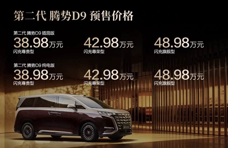近日,新款 腾势D9(参数|询价)车已经正式开启预售,官方称之为第2代,显然很有信心,确实有着不小的变化。配备了第2代刀片电池闪充技术,标配了激光雷达,同时内饰也全面更新,可以说除了外观没变,其他都变了,说是第2代,某种意义上讲并不为过。