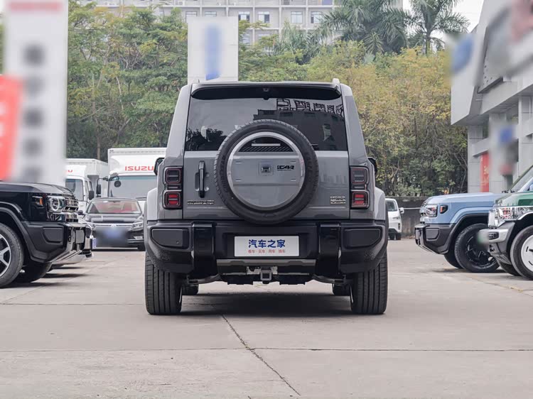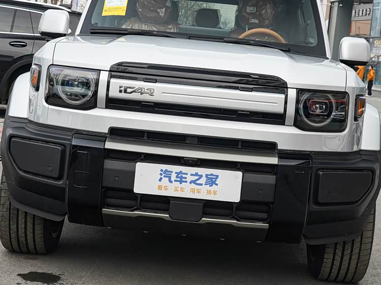5米左右的车长,接近3米的轴距,方方正正的轮廓,往那一停,确实有气势。它不像传统越野车那么粗犷,在硬朗的线条里融入了一些科技感的设计。比如那个复古的圆灯,配合可以点亮的格栅,白天看着有辨识度,晚上点亮后也挺有氛围感。