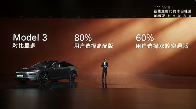 但最让人意外的,是一组预售数据:铂智7的意向用户中,对比最多的竞品是特斯拉Model 3,占比达20%。